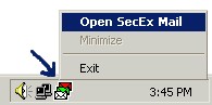 Right-click on the system tray icon with your mouse and select "Open SecEx Mail" as show below to open the configuration screen.
