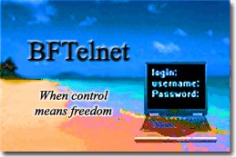 BFTelnet is a telnet server for Microsoft Windows NT/2000/XP/2003. It facilitates remote administration of your Windows NT server from any computer via a standard TCP/IP network connection.